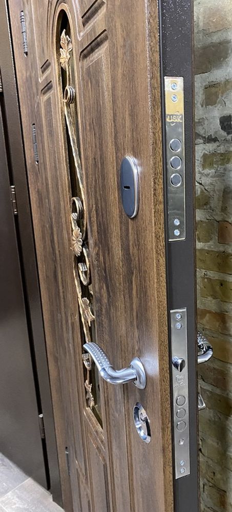 Двері оснащені якісною фурнітурою, що включає дві зовнішні петлі на прихованих підшипниках, які забезпечують легкість у відкриванні і закриванні. Вічко дає можливість побачити, хто знаходиться за дверима, не відкриваючи їх. У комплект також входить ручка на розетті, що забезпечує зручність у використанні. Утоплена броненакладка забезпечує додаткову безпеку і захист замків від злому. Євроущільнювачі сприяють герметичності дверей, запобігаючи проникненню вологи та холоду.