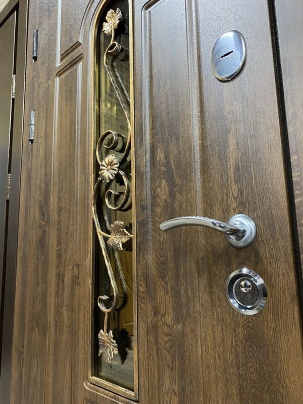 Вхідні двері 1200 Арка вулиця з ковкою – це ідеальне поєднання естетики, надійності та функціональності. Виготовлені з високоякісних матеріалів, ці двері стануть не лише надійним бар’єром для вашого дому, а й елегантним доповненням фасаду. Завдяки стилізованій ковці, ці двері привертають увагу і додають будинку респектабельний вигляд. Вони поєднують у собі сучасні технології виробництва і класичний дизайн, що дозволяє їх інтегрувати в будь-який стиль інтер’єру чи екстер’єру.