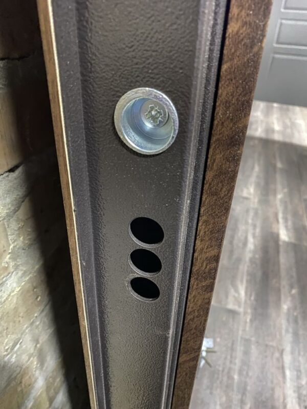 Коробка дверей виготовлена з гнутого профілю, що дозволяє зробити конструкцію ще міцнішою. Її товщина складає 100 мм, а вона також утеплена мінватою, що забезпечує додаткову теплоізоляцію і захист від холоду. Така конструкція дозволяє дверям бути не тільки надійними, але й економними в енергоспоживанні, оскільки зберігається тепло в приміщенні.