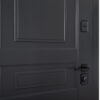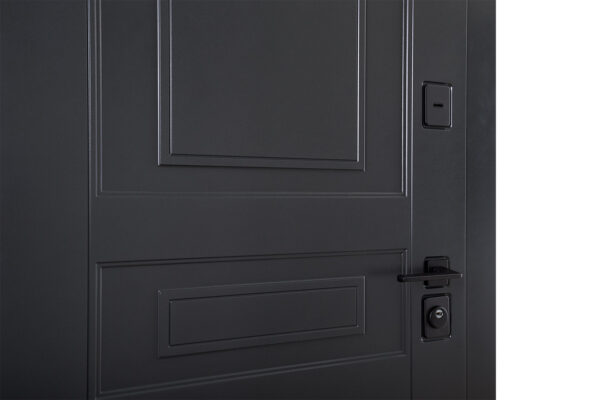 Зовнішнє та внутрішнє оздоблення виконано з вологостійкого МДФ товщиною 16 мм. Зовнішня панель має фарбоване покриття в кольорі RAL 7021 (темно-сірий антрацит) – матовий, стильний, сучасний відтінок, який ідеально пасує до фасадів у скандинавському стилі.