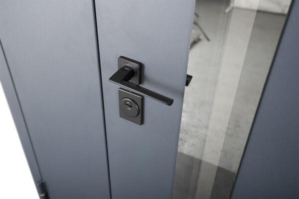 Дизайн моделі 506 Nordi Glass втілює мінімалізм і сучасність. Зовнішня сторона виконана з металу з порошковим фарбуванням кольору RAL 7021T — це глибокий антрацит, стійкий до подряпин і ультрафіолету. Внутрішня сторона — з вологостійкого МДФ 10 мм, облицьованого плівкою Vinorit білого кольору, яка легко миється і має естетичний вигляд.