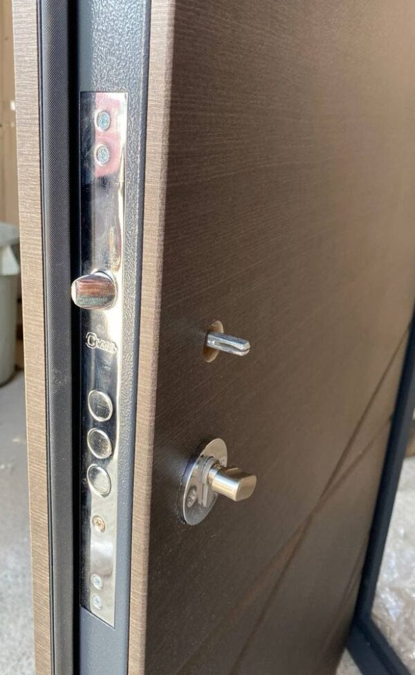 Двері обладнані сейфовим замком типу Кедр ЗВ8-8Д з 14 мм ригелями, що гарантує надійне зачинення і високу стійкість до злому. Нижній замок циліндровий тип 257 (за додаткову плату можна встановити KALE 257) забезпечує додатковий рівень захисту. Така комбінація замків гарантує, що ваші двері будуть повністю захищені від несанкціонованого доступу.