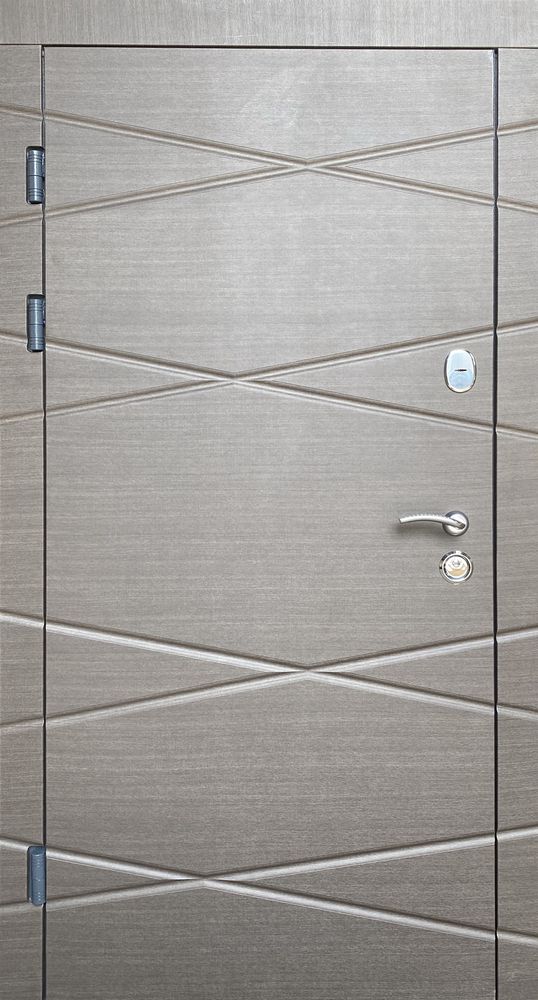 Двері виконані в стильному венге сірому горизонтальному відтінку, що додає їм елегантності та сучасного вигляду. Цей колір органічно поєднується з різними інтер’єрними стилями, підходить для як для приватних будинків, так і для офісних приміщень. Накладка з 16 мм/10 мм металу забезпечує додаткову міцність і захист від зовнішніх впливів.