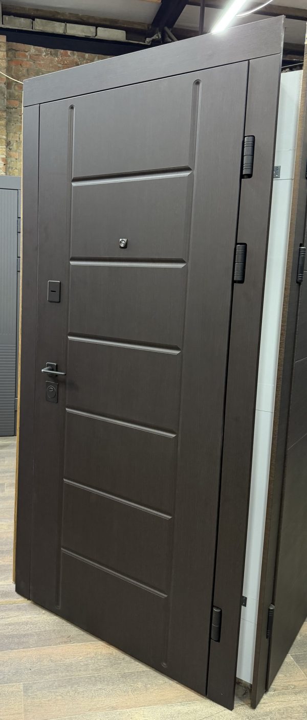 Для посилення конструкції дверей в раму були додані зворотні планки та посилення, що робить двері ще більш міцними та надійними. Це дозволяє витримувати значні навантаження і запобігає провисанню дверного полотна з часом.