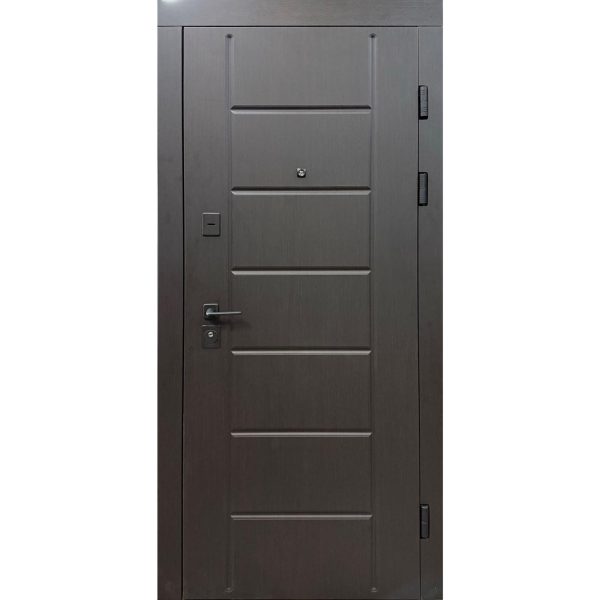 Двері Канзас Квартира оснащені три зовнішніми петлями, що дозволяють точно регулювати положення дверей і забезпечують їх надійне закривання. Додатково, двері мають вічко для зручності візуального спостереження за тими, хто знаходиться за дверима. Ручка на розетті додає дверям стильного вигляду і забезпечує зручне використання.
