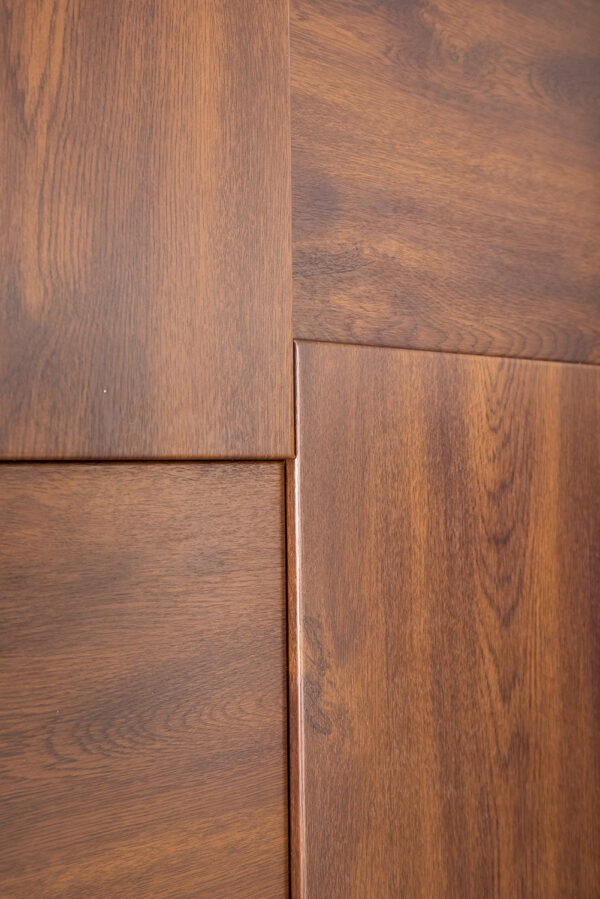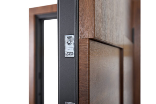 Двері LP-12 Supreme не лише функціональні, а й стильні. Зовнішнє оздоблення виконано з оцинкованого листа металу Lampre у кольорі темний дуб, який ідеально підходить для класичних і сучасних фасадів. Внутрішня сторона має накладку з вологостійкого МДФ 10 мм з покриттям Vinorit у відтінку ваніль супермат, що додає затишку і гармонійно вписується в інтер’єр приміщення.