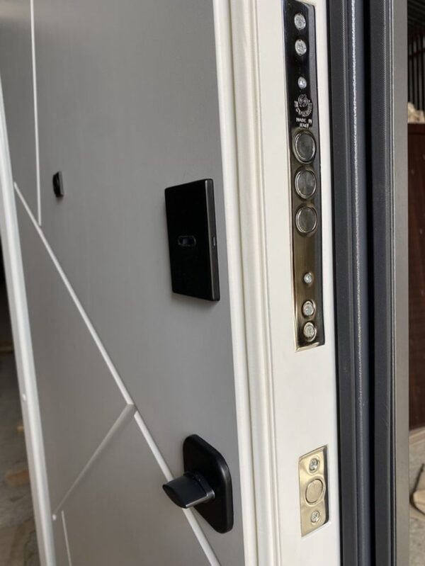 Наші двері мають верхній замок Securemme 2019XCR. Це сучасний замок, який має високий рівень захисту від взлому.