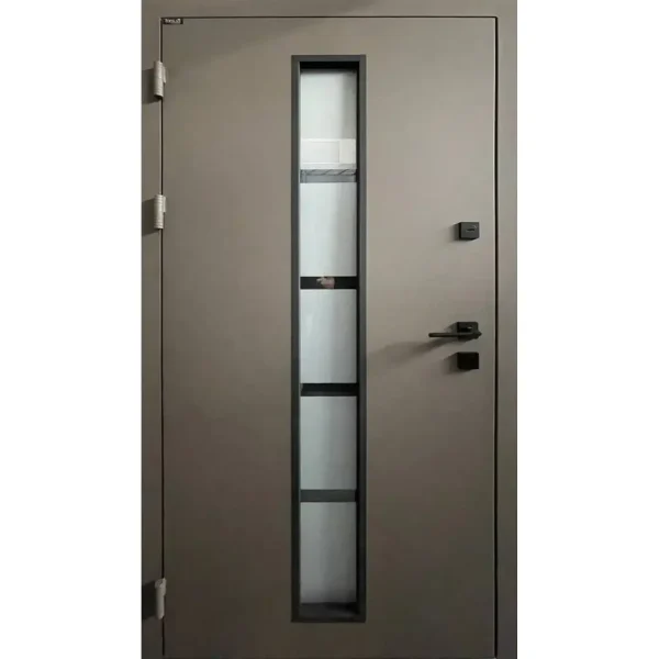 | Фурнітура | 3 петлі, ручка на розеті, ексцентрік, Сатиновий склопакет, нерж. рамка, Нерж.поріг, чорна фурнітура |